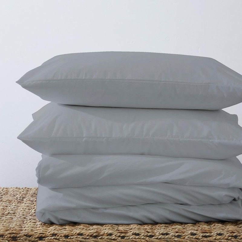 COLOR SENSE 100% Cotton Single Duvet Cover Set Light Grey 200 x 135cm, 300 Thread Count Single Bed Duvet Set, Wrinkle-Resistant, Soft & Silky, Sateen Quilt Cover with Button Closure