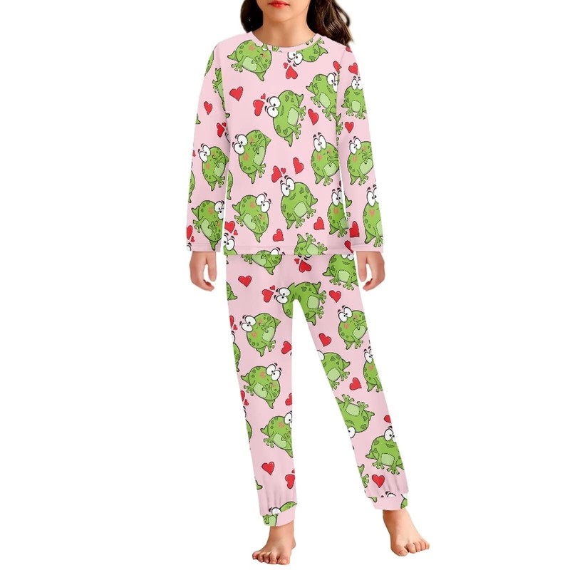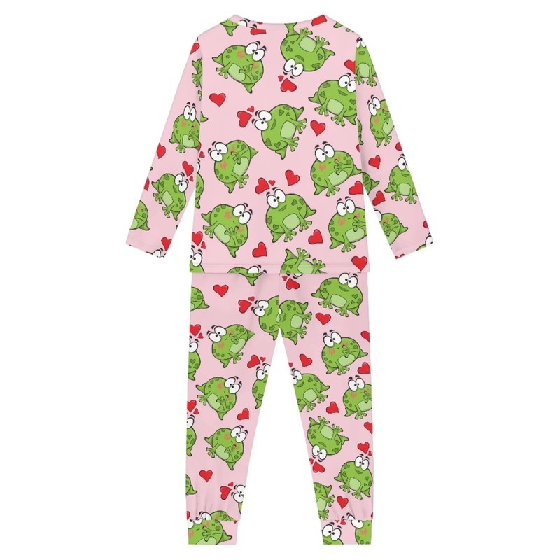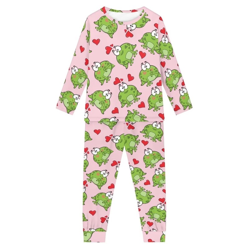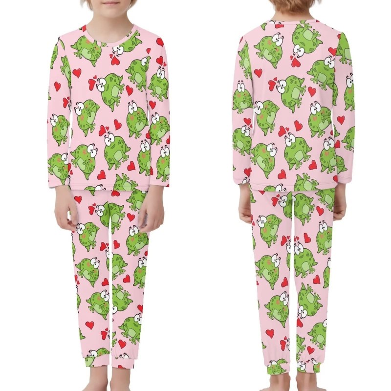 Coloranimal 2Pcs Kids Pajamas Love Heart Frog Pjs Sleepwear Sets Unisex Children Long Sleeve Nightwear Fall Clothing 7-8Years