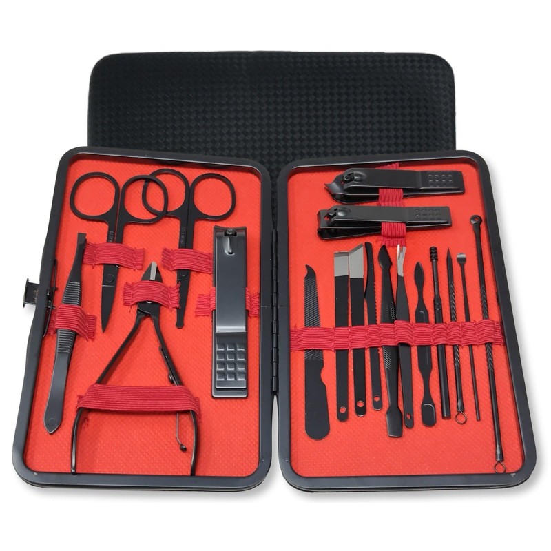 - 【全てを網羅】充実の18点セットで手軽にネイルケアを行うことができます。このセットには、爪切り、斜め爪切り、眉毛はさみ、爪やすり、ピンセット、耳かき、ダブルエンドピッカーが含まれています。