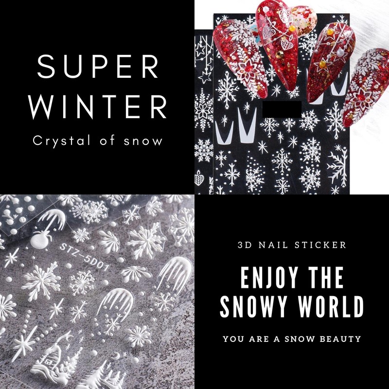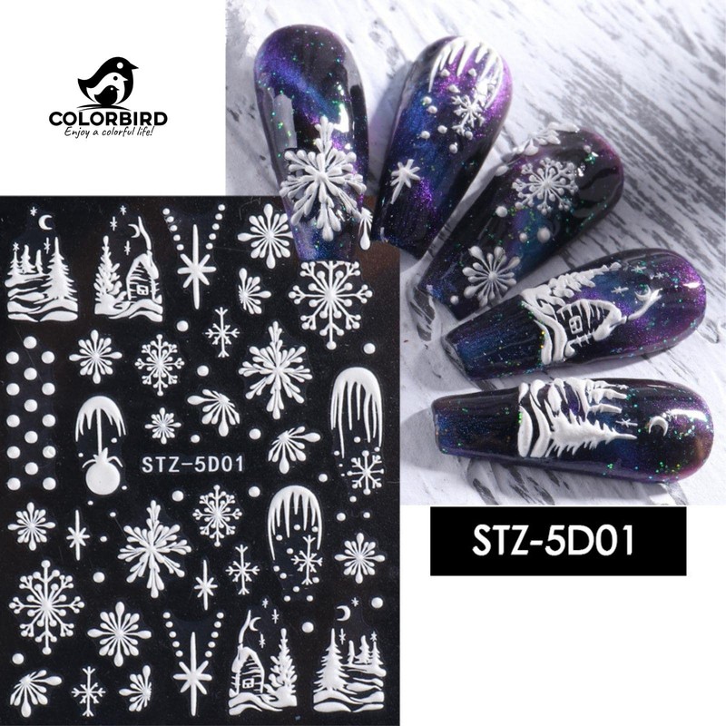COLORBIRD STZ-5D01-3 Nail Sticker, Christmas Snowflake, Cute, Snowflakes, Snowflakes, V-Shaped, 3D