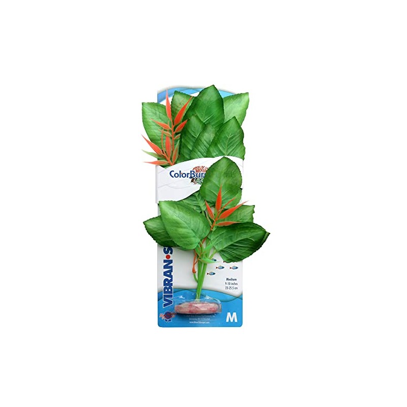 Bright and beautifully hand-dyed, this medium decorative aquarium plant will stay bright and colorful for years. Decorative plants play an important role in providing shade and cover in the aquarium, helping fish and other critters feel safe. Greene leaves, plus orange fronds. This ornament is safe for all terrariums & aquariums. 04-inches. Blue Ribbon Color Burst Vibran-Sea silk-style aquarium plants allow you to transform your aquarium into an aquatic theater, limited only by your imagination. Detailed and brightly colored plants are clean and resist fading for years! Blue Ribbon aquarium decorations are second to none!
