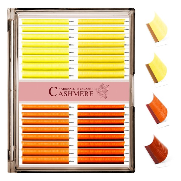 Colored Lash Extensions, 32 Rows Cashmere lash extensions, 0.07 D Curl Lash Extensions, 12-15mm Mix Classic Lash Extensions, Single Lash Extensions for Professional(32 Rows-Yellow Ombre 0.07-D 12-15)