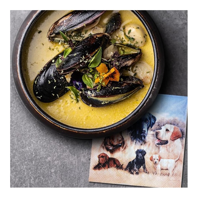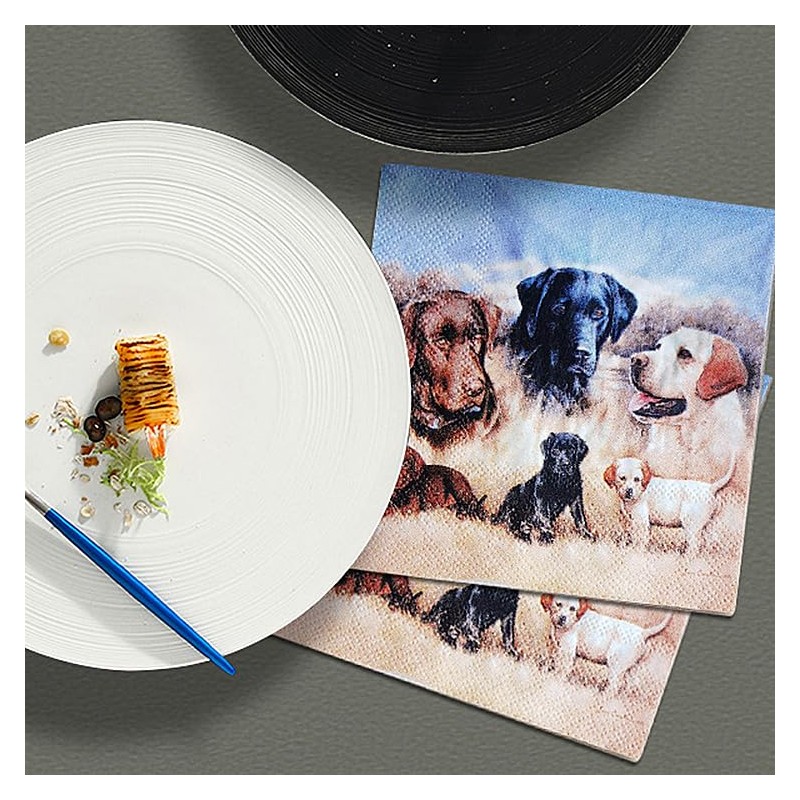 Colored Paper Cocktail Napkins, 20 Count Shabby Chic Napkins for Wedding, Dinner Tea Party Shower, Puppy