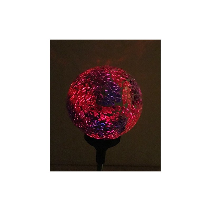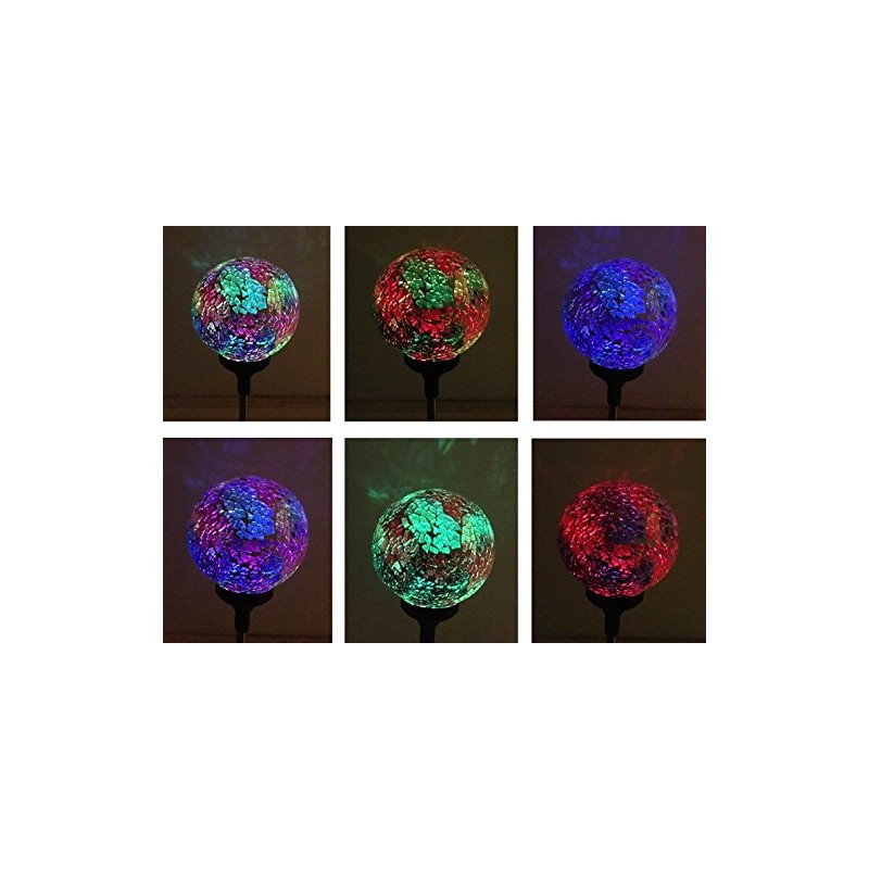 Colorful Ball Solar Lights (#Whitem003R), Solar Power Multi-Color Color Changing LED Mosaic Crackle Glass Ball Decorative Garden Yard Light Stake Lamp