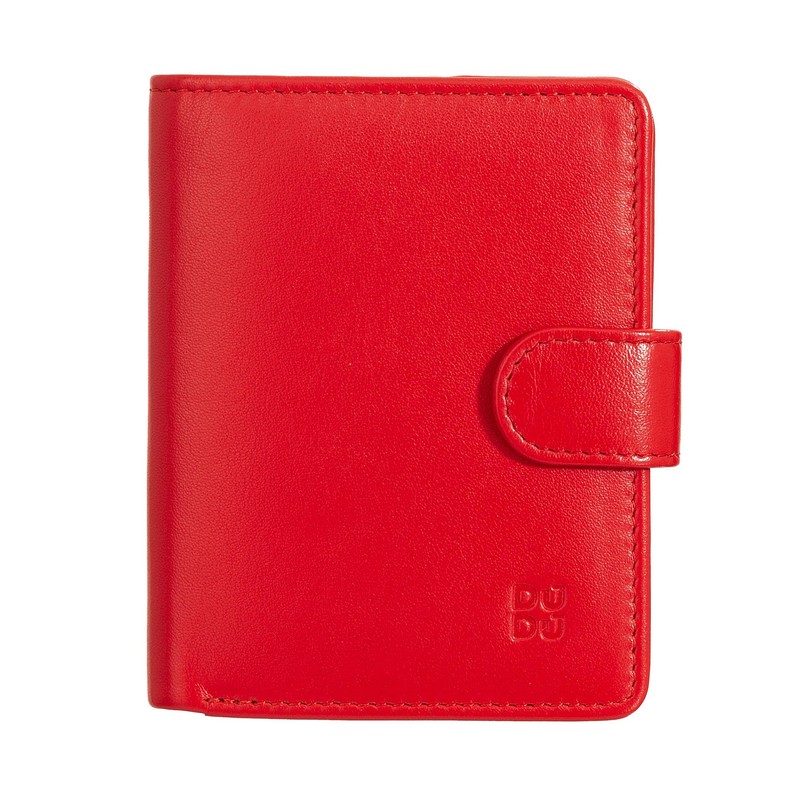 - Brand: DuDu Material: Full-grain Nappa calf leather Dimensions (closed): 8.5 x 11 x 1.3 cm Weight: 130 g Packaging: Yes Design: Women's Features: 1 zipped outer pocket, 8 credit card slots, 1 note compartment and 5 other compartments Available colours: Black, Navy, Burgundy, Fuchsia, Cornflower, Pumpkin, Mangrove Multicolour