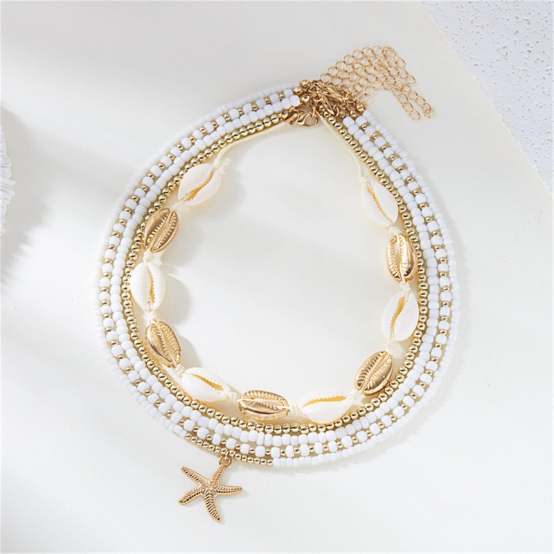 COLORFUL BLING Boho Puka Shell Starfish Seashell Choker Necklace for Women Layered Stackable Adjustable Beaded Chain Necklace Hawaiian Holiday Summer Beach Jewelry-B white