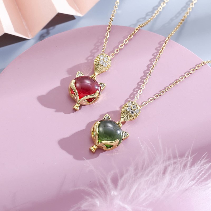 COLORFUL BLING Red Carnelian Crystal Pixiu Healing Pendant Necklace Natural Stone Gemstone Fox Protection Agate Chakra for Women Unisex Friendship Lucky Jewelry-Fox