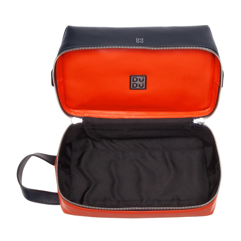 The Beauty Case in leather from the Colorful collection has been designed for the modern globetrotter and allows you to travel comfortably with light luggage. This cool accessory has a double zip and a water resistant nylon lining that can be cleaned with a damp cloth. A compact yet spacious toiletry bag for frequent travellers: if you want to take fewer things with you, you can reduce the volume of your beauty case with the practical closable sides. If you are going on a longer holiday, leave the sides open to create more space. Brand: DuDu