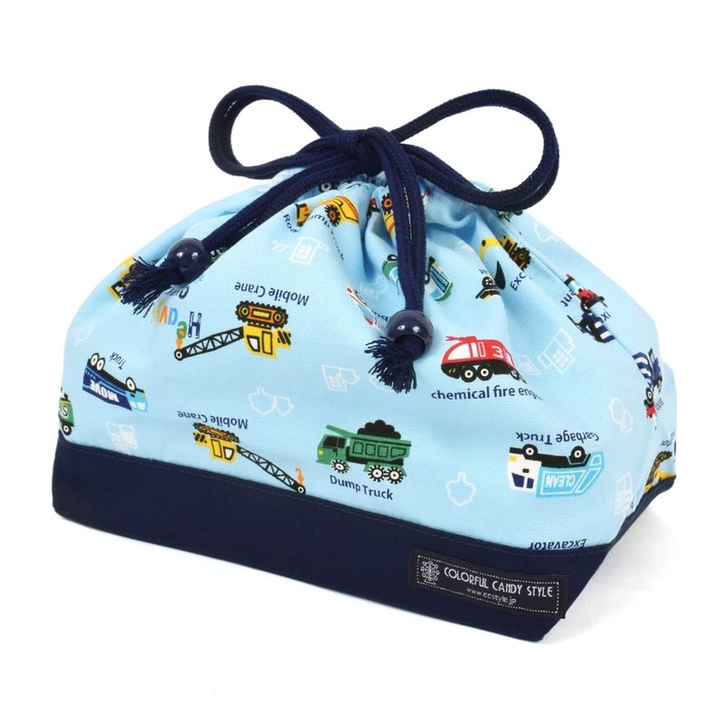 COLORFUL CANDY STYLE お弁当袋 男の子 巾着 中 子供 おしゃれ かわいい マチ付き アクセル全開はたらく車(ライトブルー) N3469500