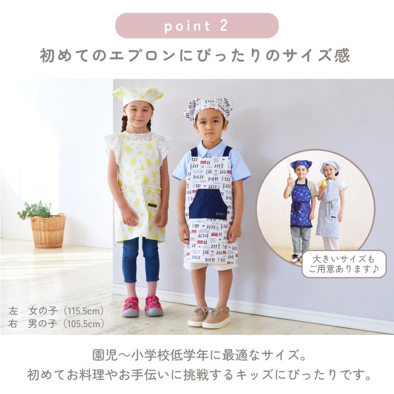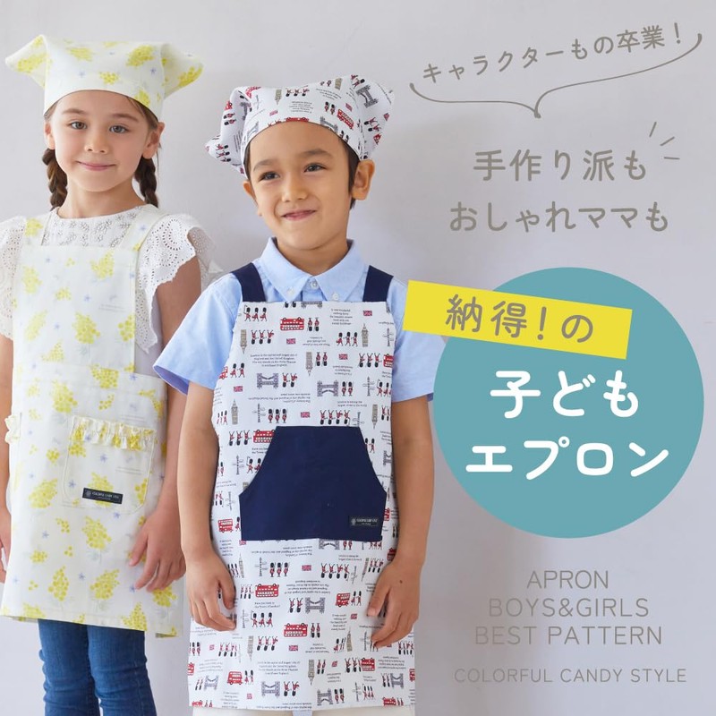 Colorful Candy Style N7901410 Children's Apron with Crossed-in-Back Straps, Slip-On, Kids, Boys, Set includes Bandanna-Style Head Covering, 39.4 - 47.2 inches (100 - 120 cm), Discovery and Exploration in The Land of the Dinosaurs, Navy