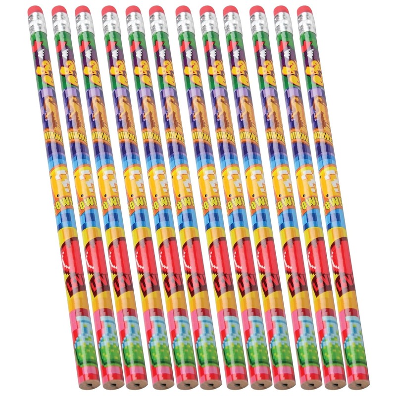 - Each pencil in this set is adorned with game-inspired phrases, including "Game Over," "Power-Up," "Winner," and "Level-Up." Immerse yourself in the gaming spirit as you jot down notes, sketch characters, or work on your next gaming strategy. The colorful design and themed prints make these pencils a must-have for gamers of all ages.👾👾👾