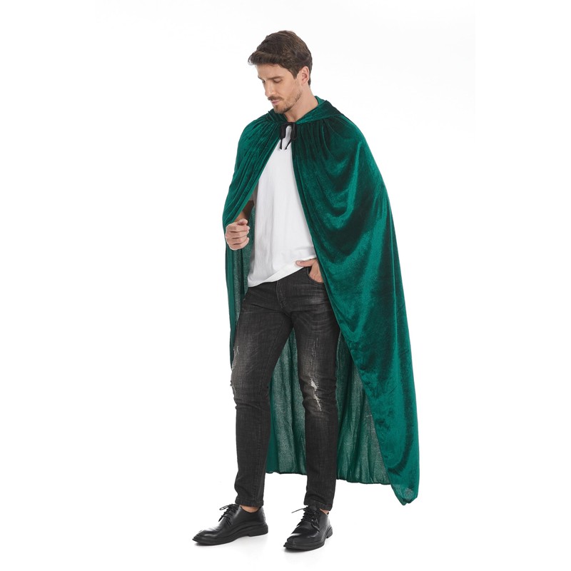 Colorful House Unisex Full Length Velvet Hooded Cape Halloween Christmas Cloak (67", Pure Green)