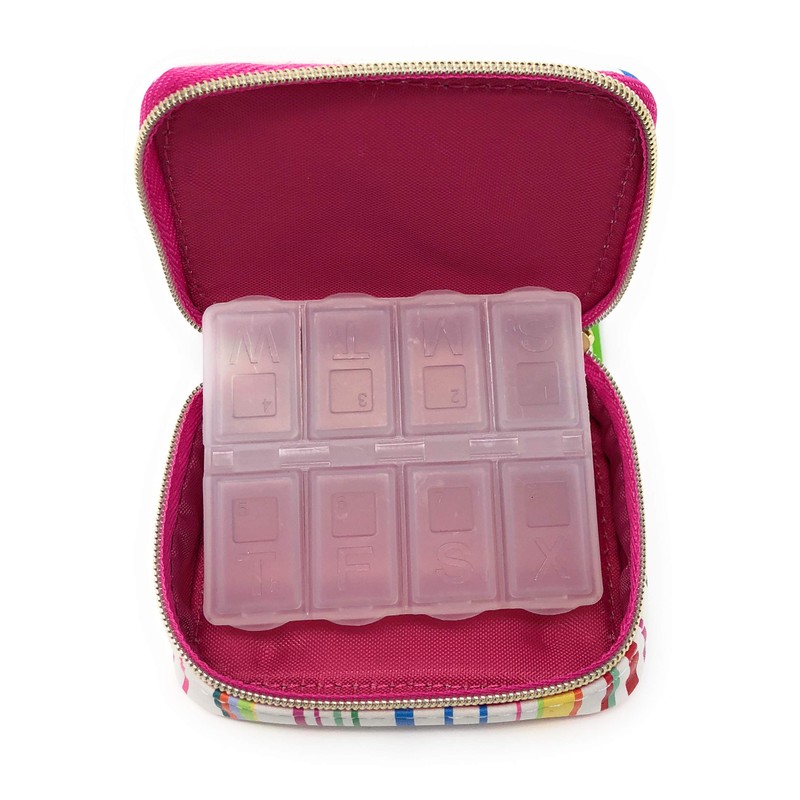 Colorful Pin Striped Pill Case Plus Pill Organizer (8 compartments)