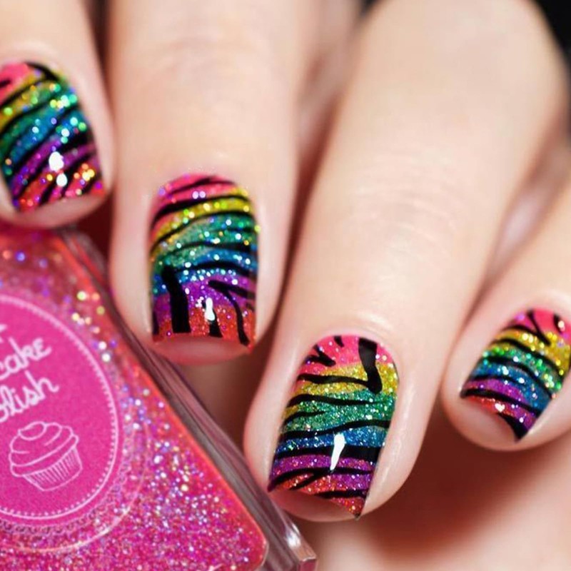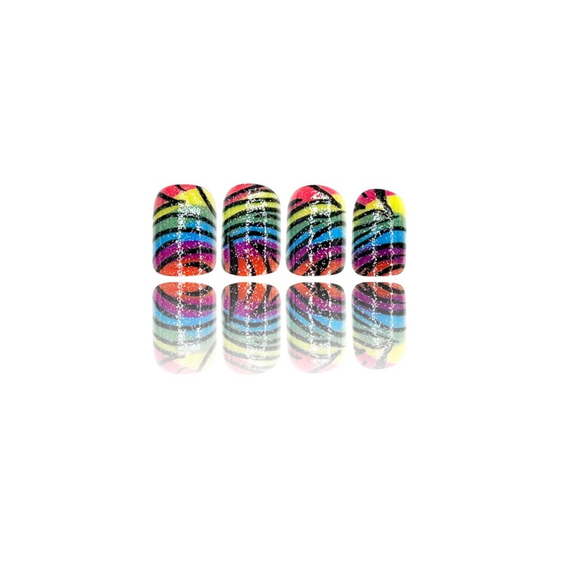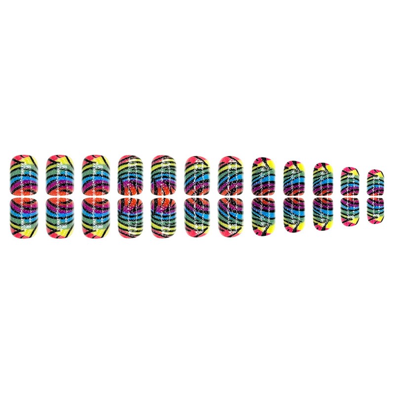 Colorful Press on Nails Medium Square Fake Nails Full Cover False Nails with Designs Shiny Glitters Glue on Nails Cute Rainbow Zebra Print Glue on Nails Glossy Stick on Nails for Women Manicure