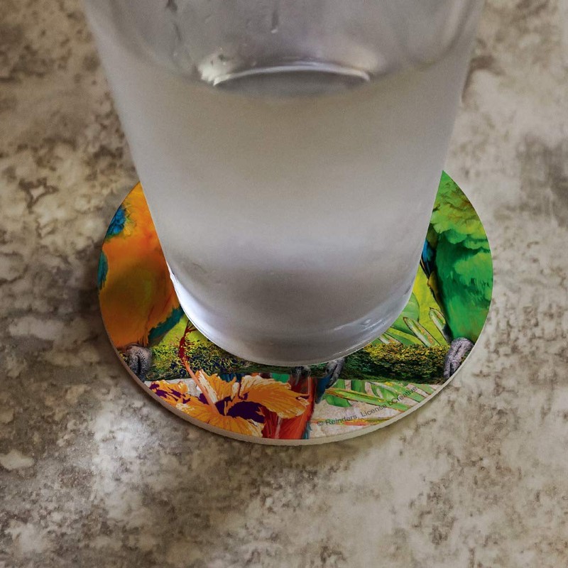 Colorful Tropical Rainforest Parrots Novelty Coaster Set