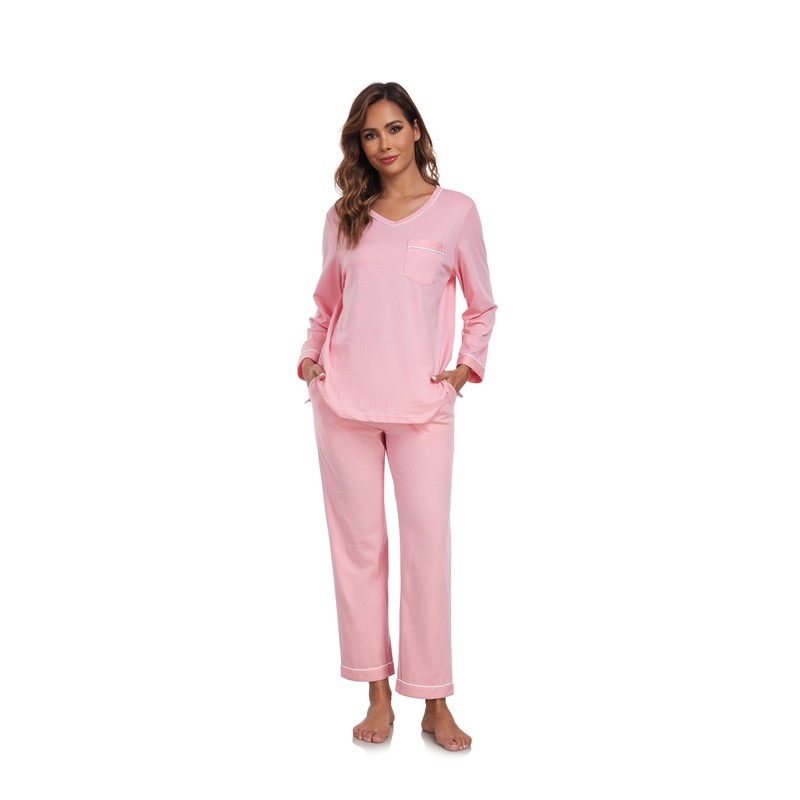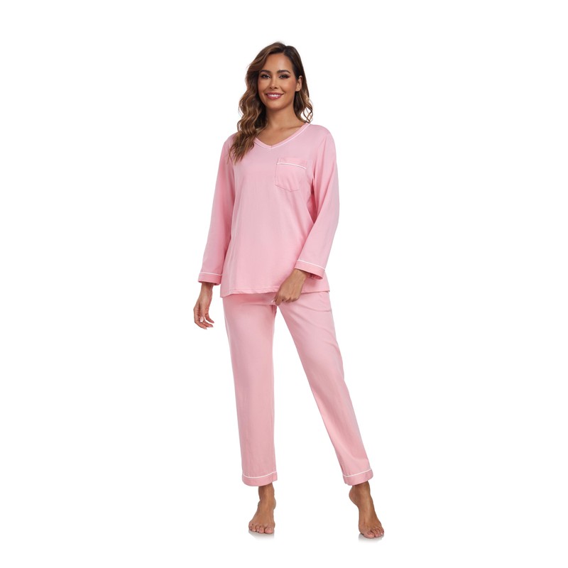 - TOP: The long sleeve pajama tops with V-neck & chest pocket design, simple but elegant, perfect for home or everyday wear on cooler days