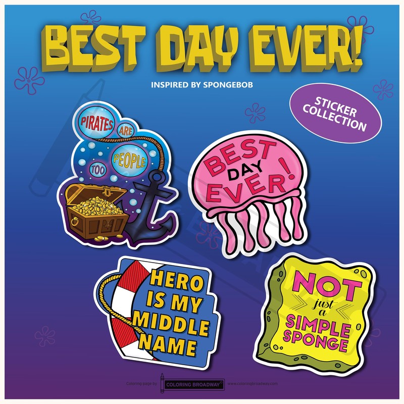 Coloring Broadway "Best Day Ever!" Sticker Collection - Set of 4 - die-Cut, Bubble Free Vinyl. (3" x 3" - Set of 4)