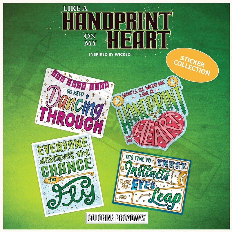 Coloring Broadway - Wicked Inspired Broadway Theater Stickers (Set of 4 - 3”x3”), Like a Handprint on My Heart Musical Merchandise, Die-Cut & Bubble Free Vinyl, Ideal Gift for Theater Lovers