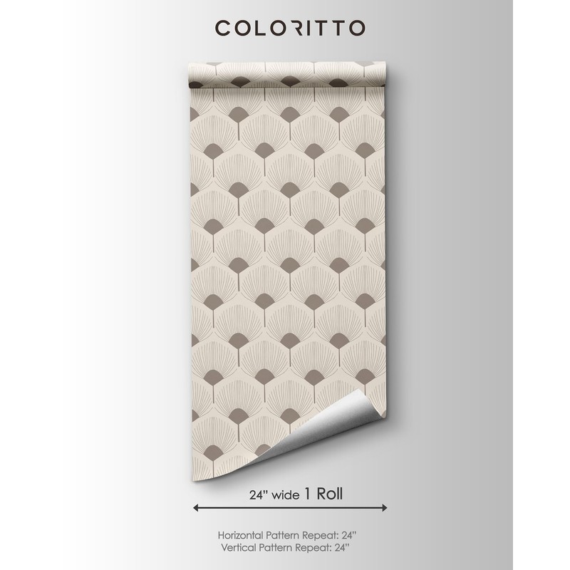 Coloritto Beige Retro Art Peel and Stick Wallpaper | Removable Self Adhesive Floral Pattern | Boho Wallpaper | Wall Art Wallpaper (Sample 12" W x 8" H)