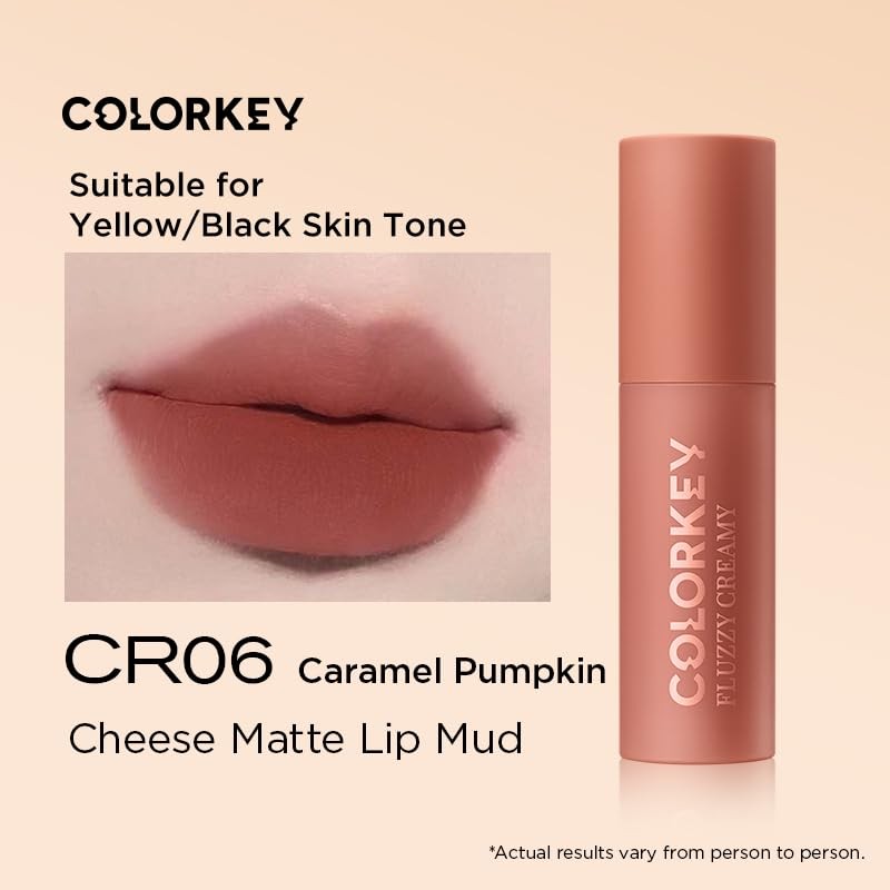 COLORKEY Cheese Matte Lip Mud, Long Lasting,Creamy Matte Finishs, Lipstick, Non-Sticky, Waterproof, Smudge-Proof(CR06 Caramel Pumpkin, 2.5g)