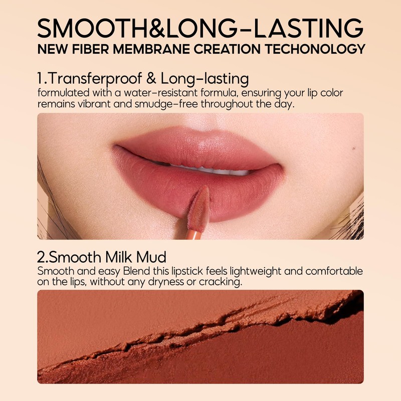 - Long-Lasting Matte Finish: Experience a velvety, non-drying matte lip color that stays put for hours without transferring or fading.