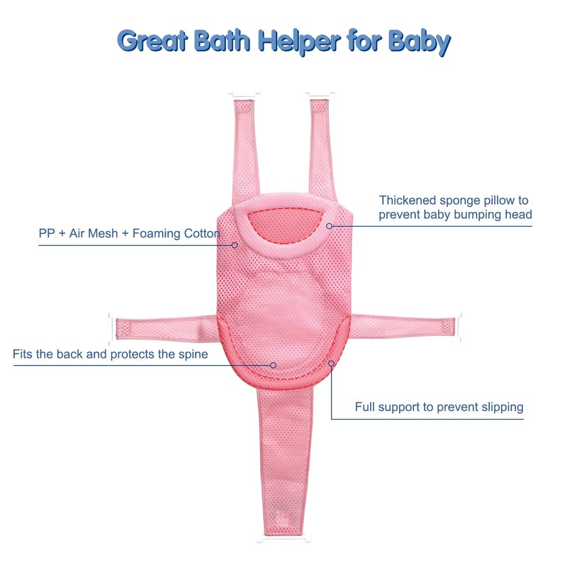 Colorlife - Red de apoyo para asiento de baño para bebé, ajustable, cómoda, antideslizante, de cinco puntas, malla para recién nacidos de 0 a 6 meses, color rosa (sin tina)