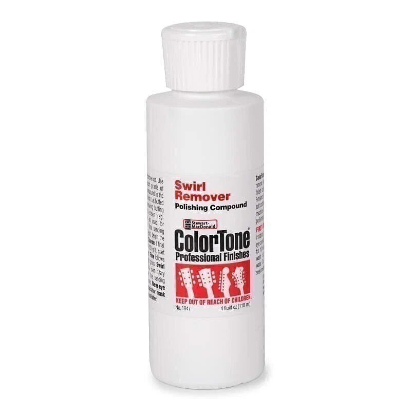 A customer described it best: ColorTone® polishing compounds make the magic happen! Used by hand with a soft cloth or with foam rotary polishing pads, they transform a fine-sanded new finish into a dazzling high-gloss surface you can be proud of. ColorTone compounds remove fine sanding scratches on instrument finishes and plastic pickguards, with no silicone residue to hamper future refinishing. Swirl Remover applied with a foam rotary pad removes buffing marks and extremely fine sanding scratches on fresh finishes. It can also be used by hand to bring out a higher lustre on new or aged finishes.