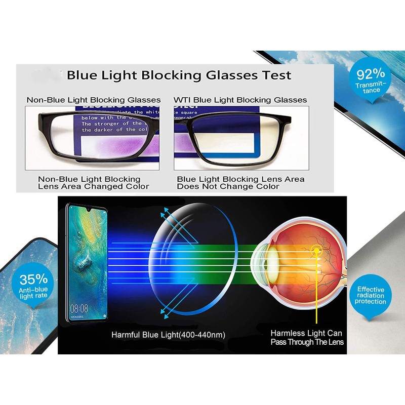 Clear lenses or Amber tinted lenses to minimize Digital Eye Strain caused by harmful blue rays emitted from digital screens Great for alleviating visual fatigue and discomfort from long periods of web surfing, gaming and working under fluorescent lights Ultra light weight and flexible TR90 frame material for long term use and durability Includes microfiber free cleaning cloth