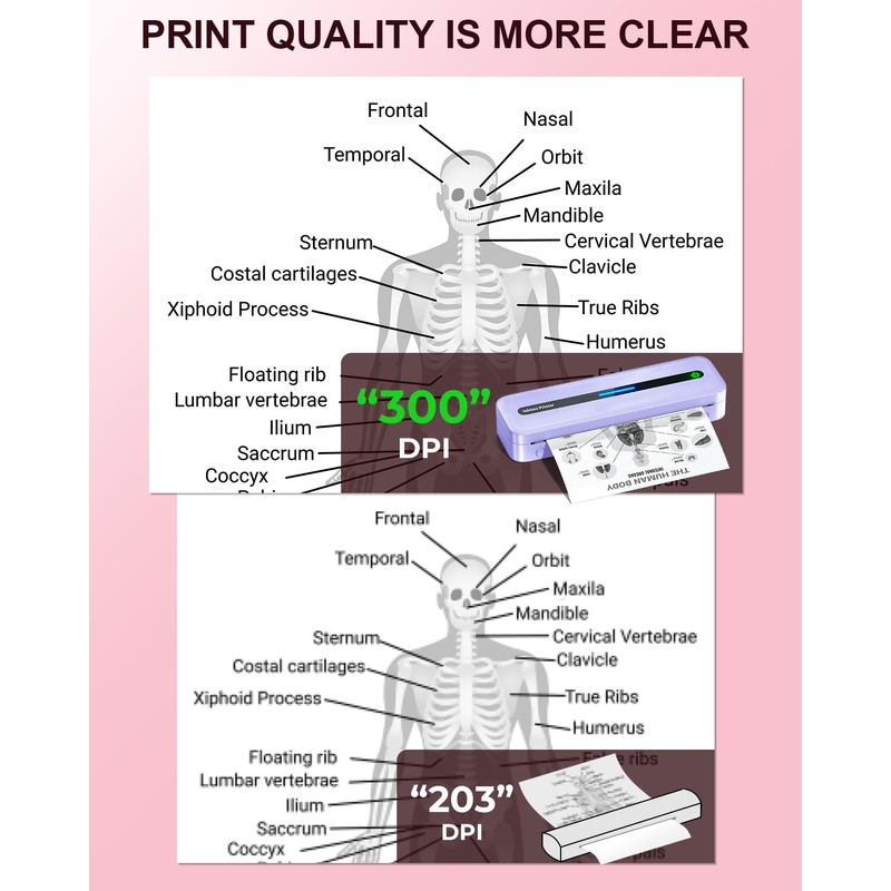 - CRISP PRINTS & USER-FRIENDLY: Our wireless thermal printer is 300DPI, beating most of the mini thermal printers on the market is 203DPI. Prints are sharper and clearer! And Installing and using mini portable printer just in 1 minute.
