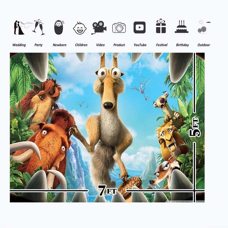 Colorwonder Ice Age Movie Backdrop 7x5ft Jungle Safari Animals Ice Age Theme Birthday Background for Kids Vinyl Wild Adventure Ice Age Happy Birthday Backdrops for Party Decorations (A4-B70611)