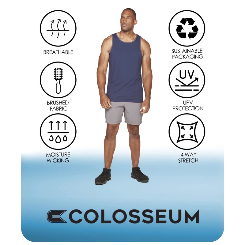 COLOSSEUM Active Men's Performance Four Way Stretch Weight Lifting Tank Top (Navy, Small)