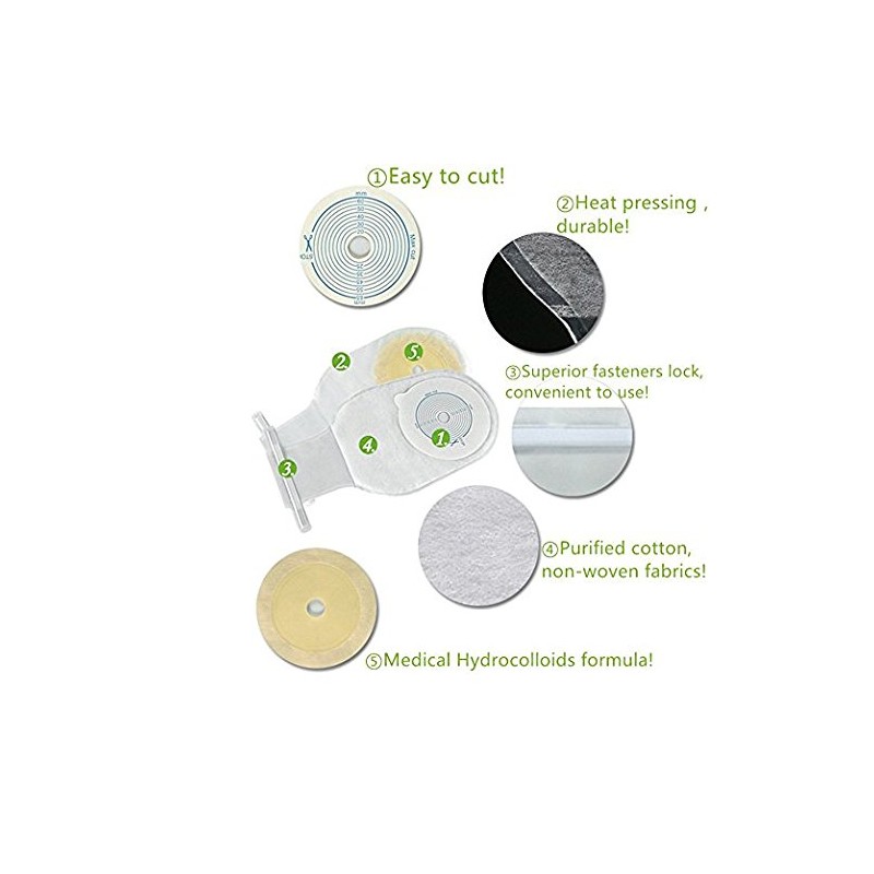 - The colostomy products easy drainage and to securely lock out odor,The drainage bags easy to remove the adhesive without leaving residue on the skin