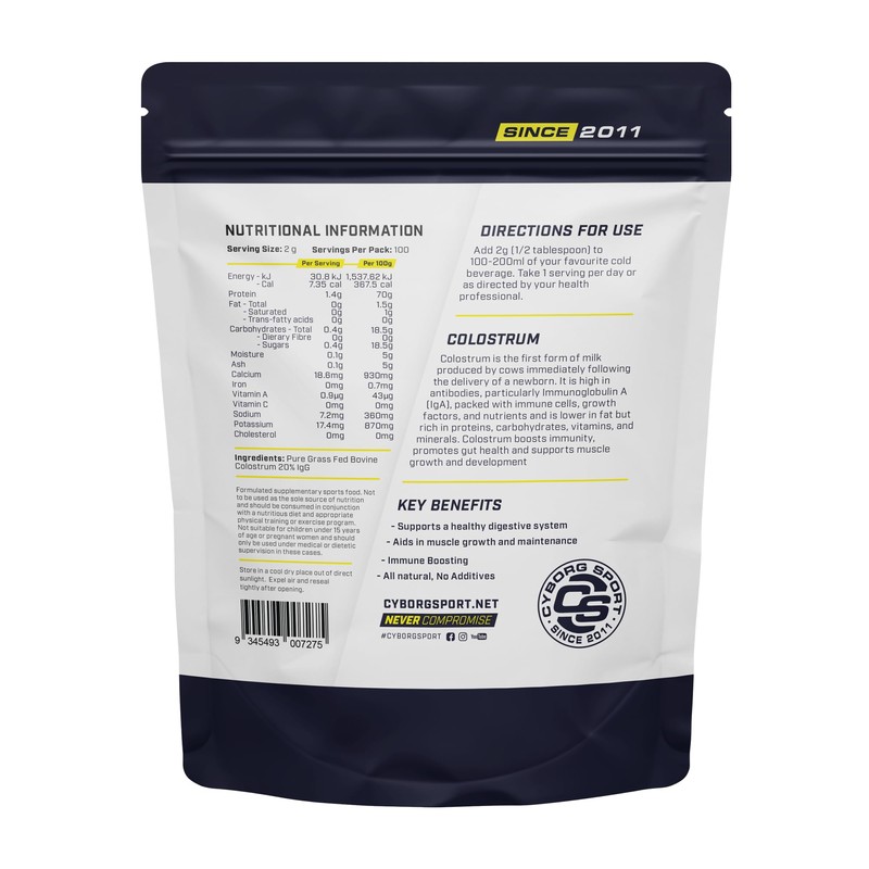 Colostrum - 200g - 100 Servings - 20% IgG - Pure Grass Fed Colostrum - Immunity - Recovery - Gut Health - by Cyborg Sport