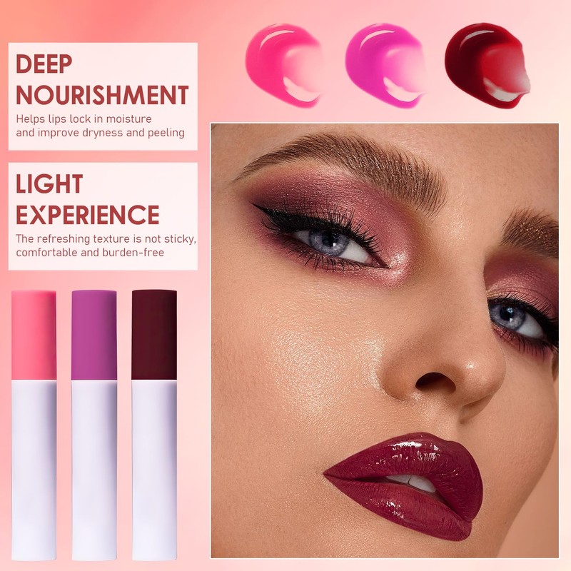 - 【Natural Glossy Finish】Choose from 3 different colors to match your vibe! Lips Staining Long-Lasting Lip Oil touts a flake-free, feather-free formula that glides on with a moisturizing slip designed for maximum comfort. Re-apply Lips throughout the day to for a fresh glossy finish or use a single swipe for matte stain all day