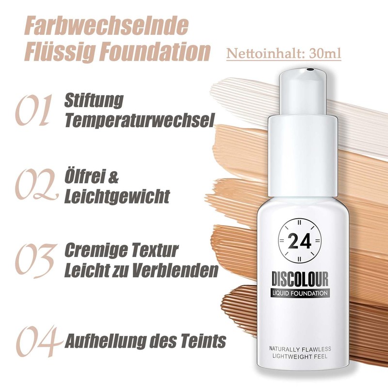 Colour-changing foundation, lightweight foundation colour changing, moisturising liquid foundation, hides wrinkles and lines, long-lasting concealer cover, flawless make-up
