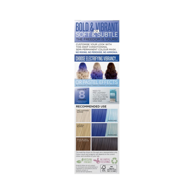 Colour-Freedom Pink Pizazz Ultra Vibrant Semi-Permanent Pink Color Mask. With Shine Booster Complex. By Knight & Wilson (Truly Blue)