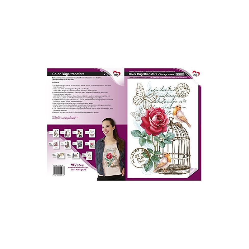 Colour iron-on transfer, DIN A4, filigree without background, decorate textiles such as T-shirts and bags with iron-on motifs, iron on pictures quickly and easily, nostalgia series, DIY textile design (Aviary)