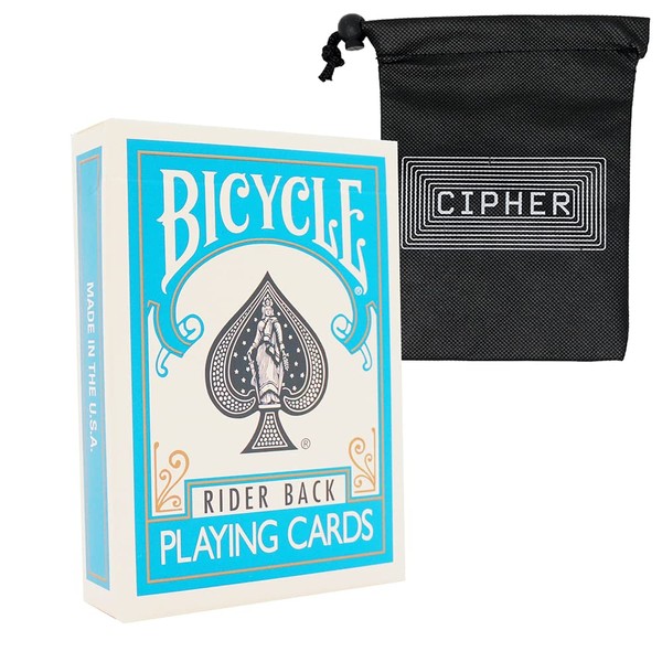 Coloured Bicycle Playing Cards - Classic Rider Back Design- Includes Cipher Card Bag (Turquoise)