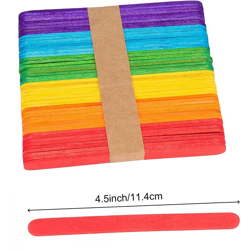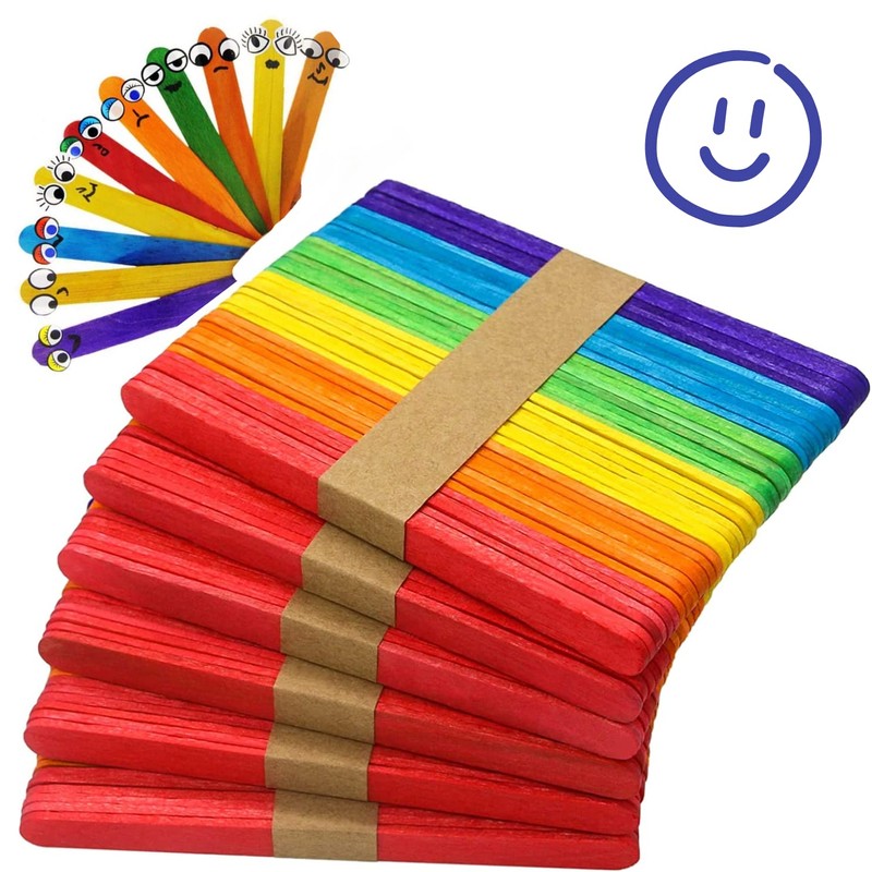 Coloured Lollipop Sticks, 300 Lolly Sticks, Craft Sticks, lolly pop sticks, Red, Green, Yellow, Blue And Orange 5 Colours