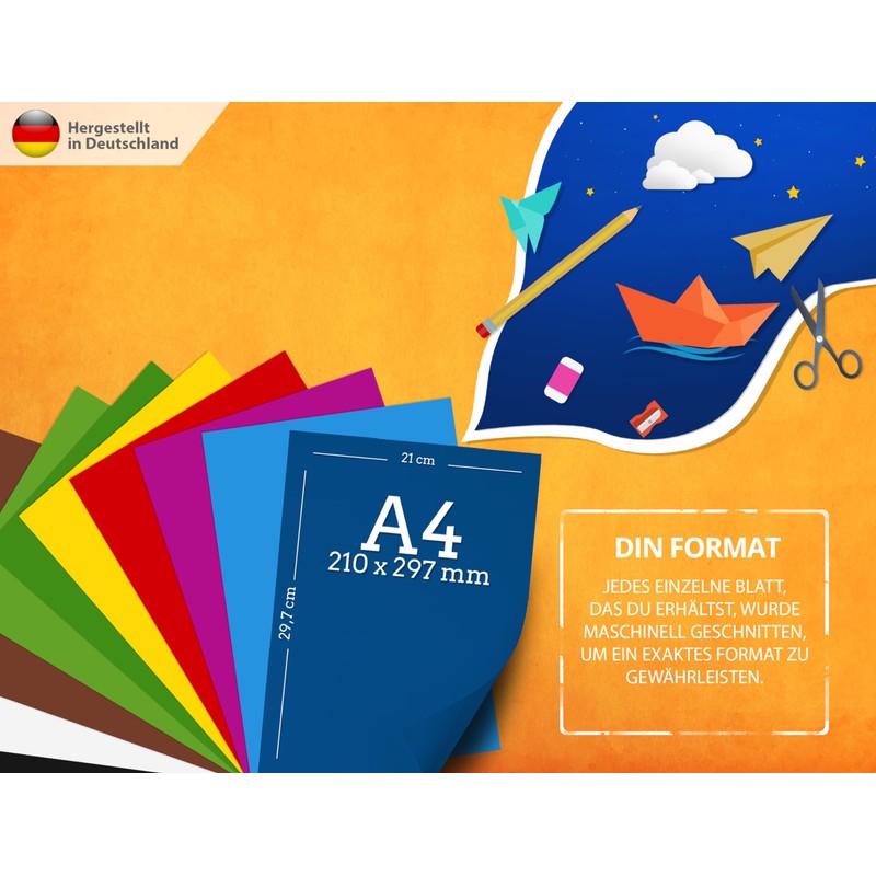 - Very large variety of colours: Thanks to the 10 intense, different colours, this paper is suitable for all kinds of craft and design work. Whether you are scrap-booking, making small characters or making your own invitation cards, all this is possible. The front and back both have the same high colour intensity, so that you can enjoy the same colour intensity. For example, collages or photo albums always have a nice overall image.