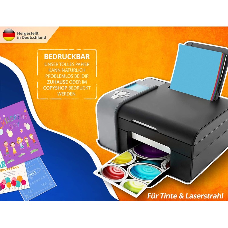 - Can be printed at home: Our paper is easy to print in your printer. Both with an inkjet and laser printer have a very nice print image. Please select the paper type "Carton" in the printer. If this paper is too thick, you can find our 130 g/m strong version under the article number "EVBPTZPA4B100".