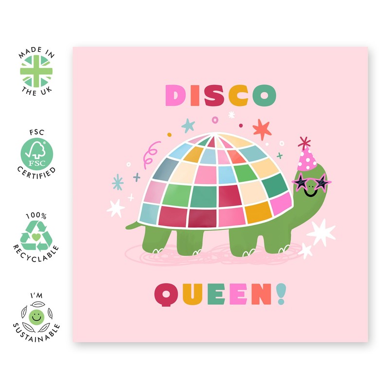 Colourful Birthday Card Turtle - 'Disco Queen' - Gifts for Best Friends, Besties, BFF,Girlfriends, Sister, Sis, Co-workers, Colleagues, Aunt, Her - Dancing - Comes with Fun Stickers