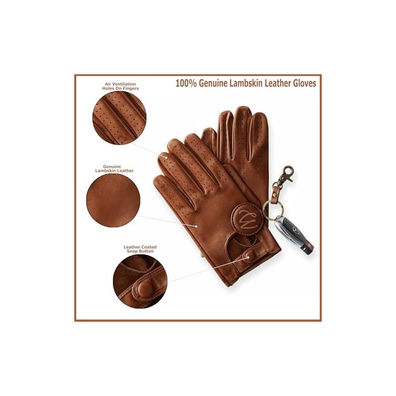 COLOURLINX Leather Driving Gloves Mens Fashion Soft Genuine Lambskin Chauffeur Biker Unlined Retro Classic Car Bike Sports Stylish Real Leather Chauffeuring Gloves (Tan, L)