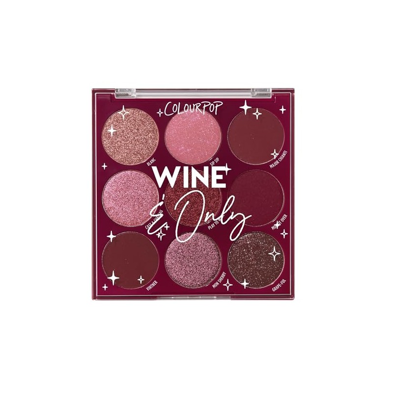 - Wine & Only - Rich burgundy and deep reds, this eye palette is a love letter to our favorite shade of wine in Matte, Metallic and Matte Sparkle finishes. Make a statement or add a wash of color, this richly pigmented palette will be a staple in your collection.