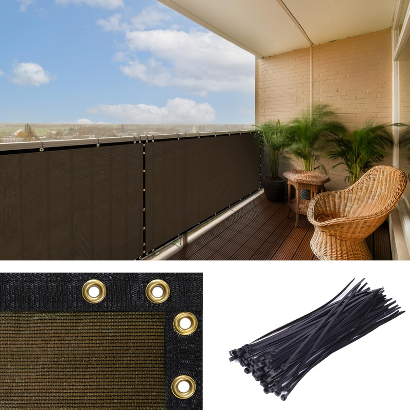 ColourTree Customized Size Brown 3' x 20' Balcony Privacy Screen, Apartment Porch Railing Patio Fence Windscreen Fabric Cloth - Commercial Grade 170 GSM - 3 Years Warranty - Cable Zip Ties Included