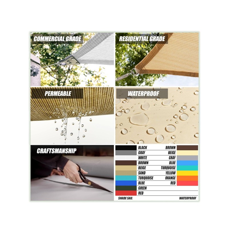 ColourTree Grey Custom Size Triangle Sun Shade Sail Canopy Fabric Outdoor Patio