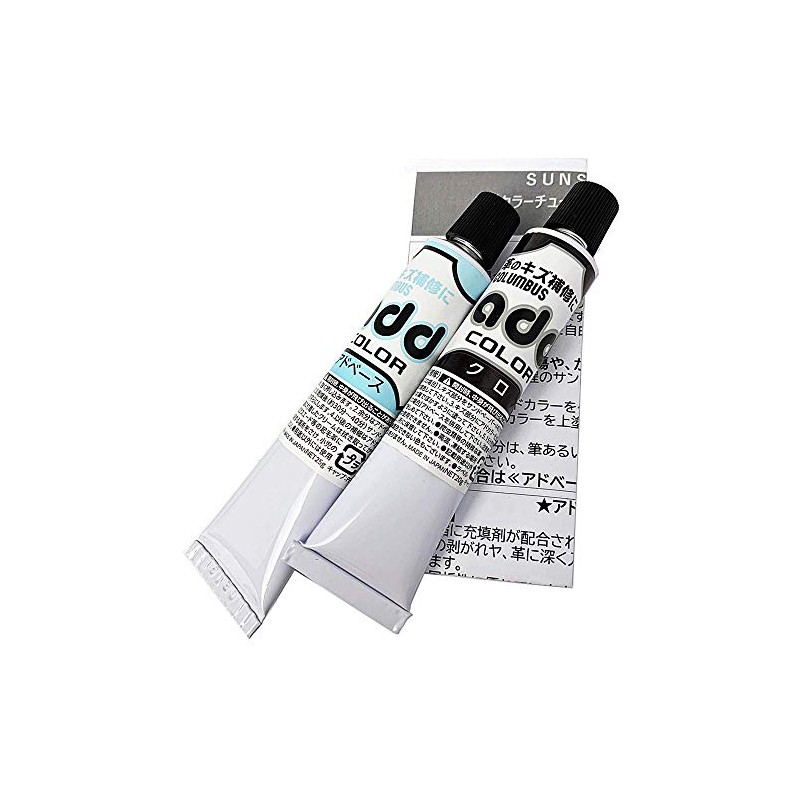 - This set, made by Columbus, contains a tube of Add Color for shallow scratches on the surface of the leather shoes, and a tube of Add Base for filling deeper scratches