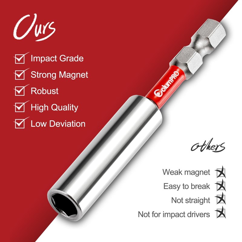 - 【WIDE APPLICATION】- This magnetic impact bit holder can extend drill bits, screwdriver bits, and anything with a 1/4" hex shank. The ColumPRO Bit Holder is easy to use and install. Simply attach it to your impact driver and you're ready to go. Its convenience and efficiency make it a must-have tool for any toolbox. ColumPRO impact bit holder is perfect for machinists, DIY enthusiasts, homeowners, repairmen, and contractors.