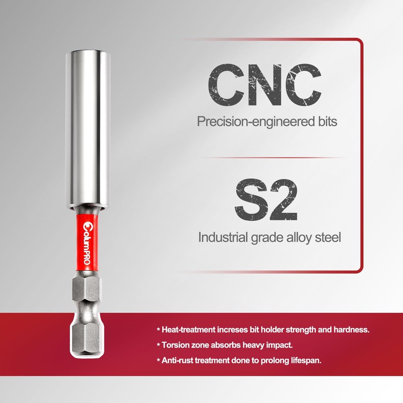 - 【POWERFUL】- The ColumPRO 1/4" Strong Magnetic Impact Bit Holder, made of high-quality S2 Steel, boasts extreme toughness and long-term durability, while the rust resistance feature guarantees a long lifespan.