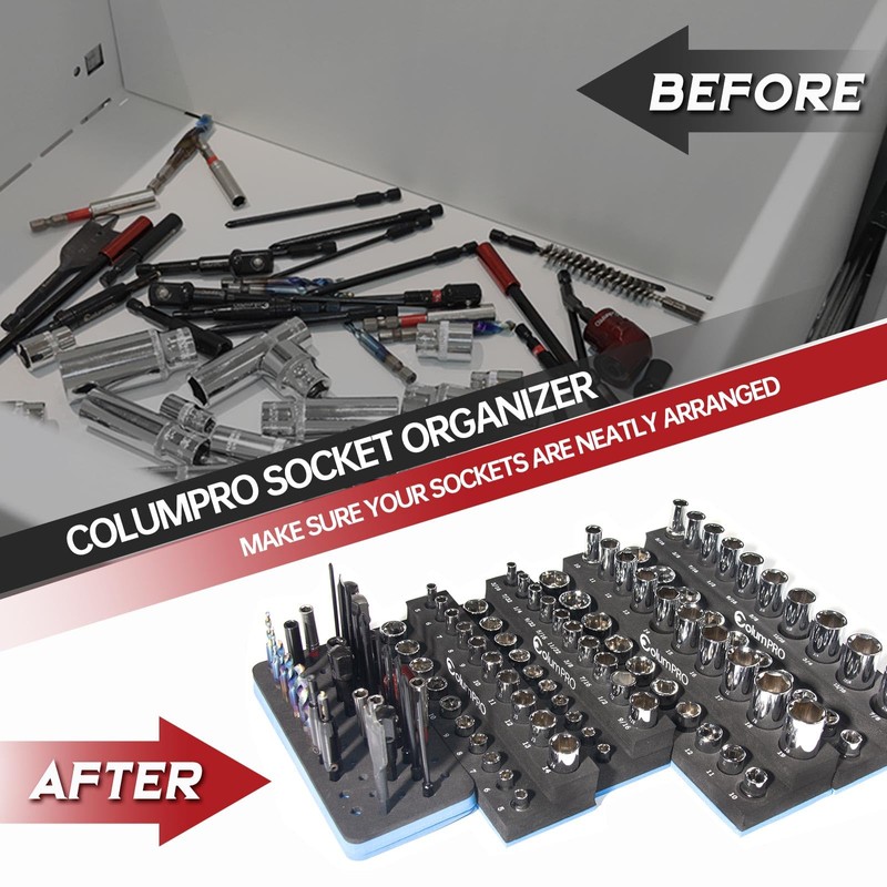 - Comprehensive Socket Organization: The ColumPRO Foam Socket Organizer features all common size holes for 1/4" & 3/8" drive sockets, accommodating both SAE and Metric sizes. Designed to securely hold both standard depth and deep sockets, keeping your tool box drawer organized and efficient.